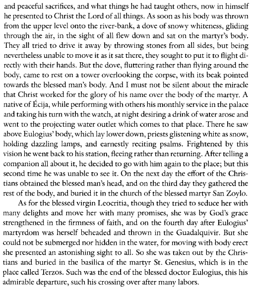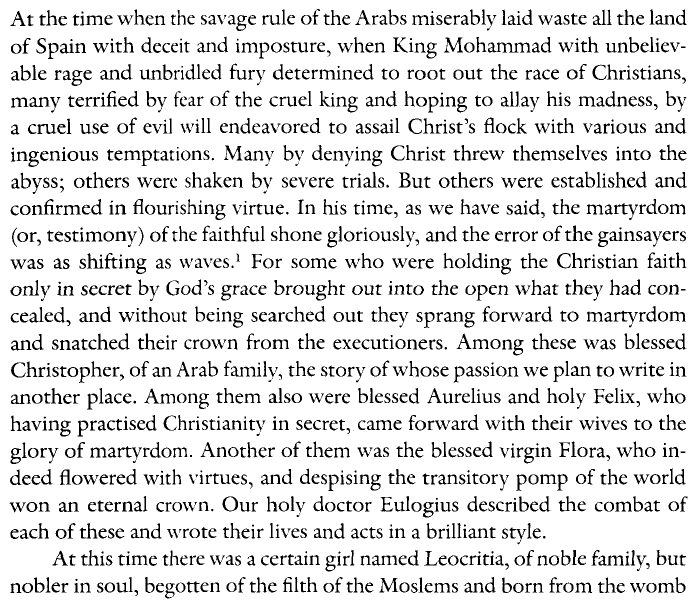 This passage is from a martyrology of Eulogius (d. 859), a Mozarab clergyman. It was written by Paul Alvarus.
