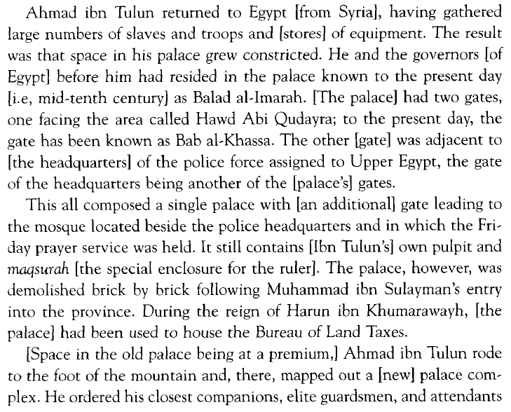 This passage comes from Balawi, an Arab historian from Egypt who wrote the biography of Ahmad b. Tulun in the 10th century.
