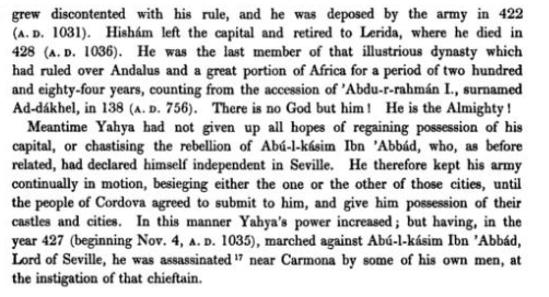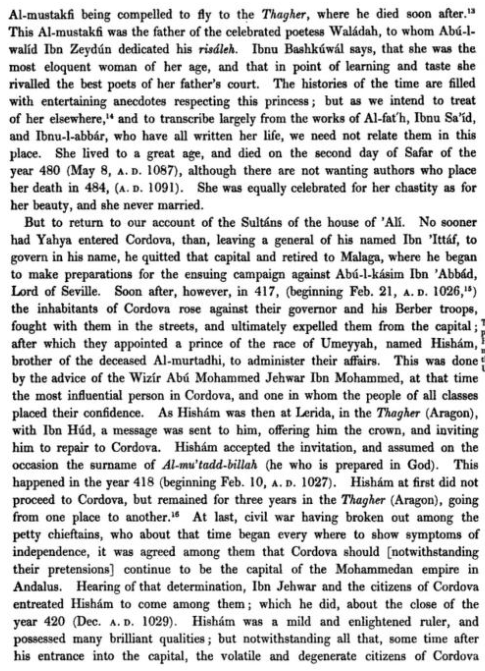This passage is from Ibn Hazm’s famous book, the Ring of the Dove. This volume is a rumination on the nature of love, but he tells us in passing about the things he experienced during the Andalusi fitna.