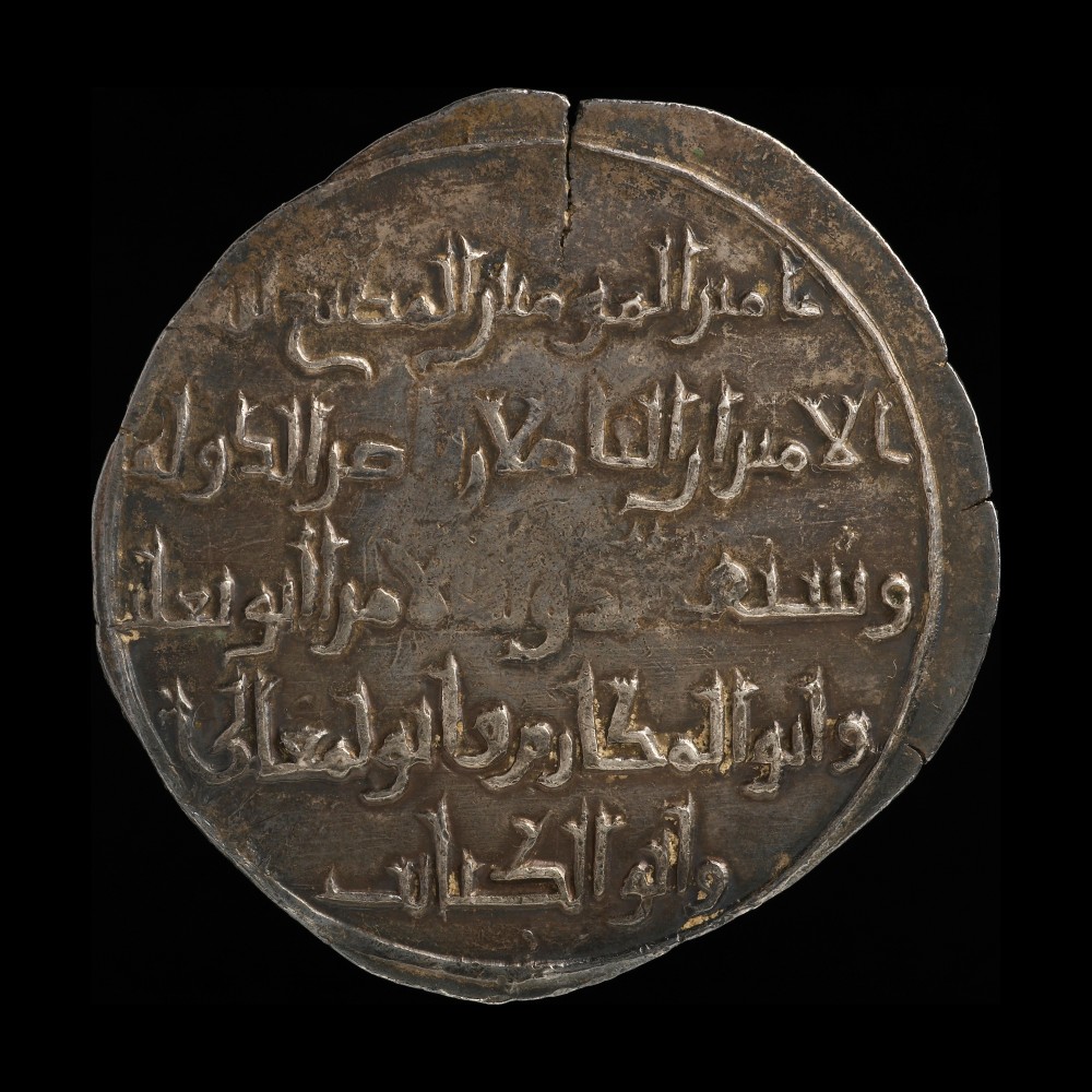 Obverse, in field (around the rider): “Sayf al-Dawla Abu l-Hasan”; in margin: “commander of the faithful al-Muti’ lillah, the two exalted princes Nasir al-dawla and Sayf al-dawla, the princes Abu-Taghlib and Abu’l-Mukarrim and Abu’l-Ma’ali and Abu’l-Kitabat.” Reverse, in field: “the two exalted princes Nasir al-dawla and Sayf al-dawla, the princes Abu-Taghlib and Abu’l-Mukarrim and Abu’l-Ma’ali and Abu’l-Kitabat.”