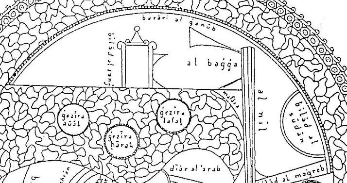 You can see the Nile (a straight vertical line) with Sudan to the right and the Maghrib (North Africa under it). Off the Nile is “al-Bajja,” then to the left is the Zanj.