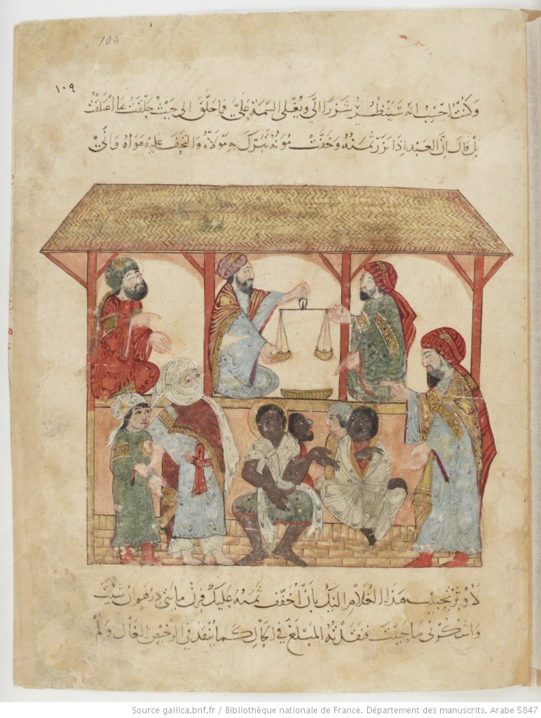 This image of a market comes from a book of stories by Hariri, copied in the 13th century.