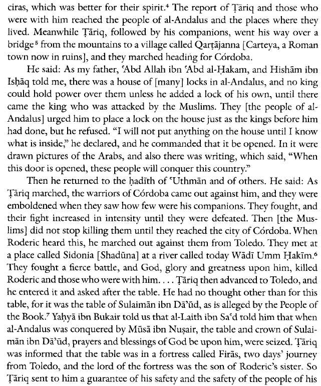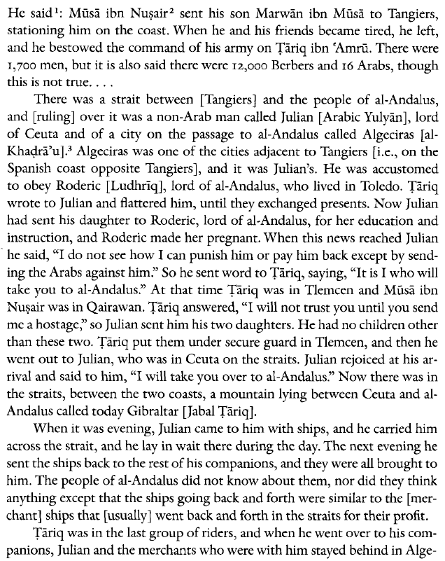 This snippet was written by Ibn ‘Abd al-Hakam, an Egyptian historian who wrote a book in Arabic in the 9th century about the conquest of Spain.