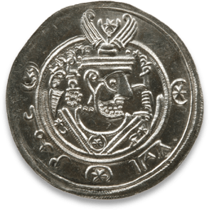 Obverse, in field: Sasanian-type bust facing right after the style of Khosrow II, to left downwards in Pahlavi: “may his kingship increase,” to right downwards in Pahlavi: AUMR BNAALA; in margin in Arabic: ‘Umar b. al-‘Ala [‘Abbasid governor]. Reverse: 125 of the post-Yazdigird III era = 160 H (776-777 CE), Tabaristan, in Pahlavi.