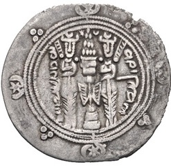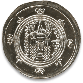The Dabuyids ruled Tabaristan in Northern Iran in the 7th and 8th centuries. They minted this coin in the 720s-40s, after the Marwanid Reforms. However, they retained the Sasanian style and Middle Persian inscription “May his xwarrah increase.”