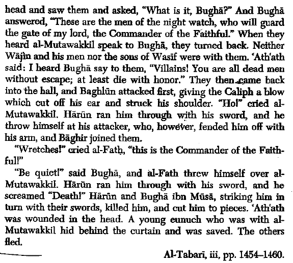 This passage is from an Arabic history written by Tabari, a famous Muslim living in 10th-century Iran. He compiled one of the most influential histories of the early Islamic period.