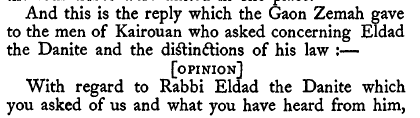 Eldad ha-Dani The Letter from Qayrawan This letter was preserved in the Cairo geniza and preserves a letter reportedly from the Jews of Qayrawan to the Ganon Ṣemaḥ b. Ḥayyim in Baghdad. The Letter from Qayrawan The Response from Baghdad