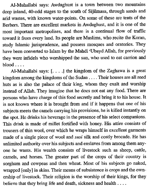 The following is an excerpt from the work of Al-Muhallabi, who served as a government official in the Buyid court.
