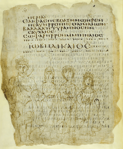 This image is a depiction of Job from a 7th-century Greek Bible. It is possibly modeled after Heraclius and his family.