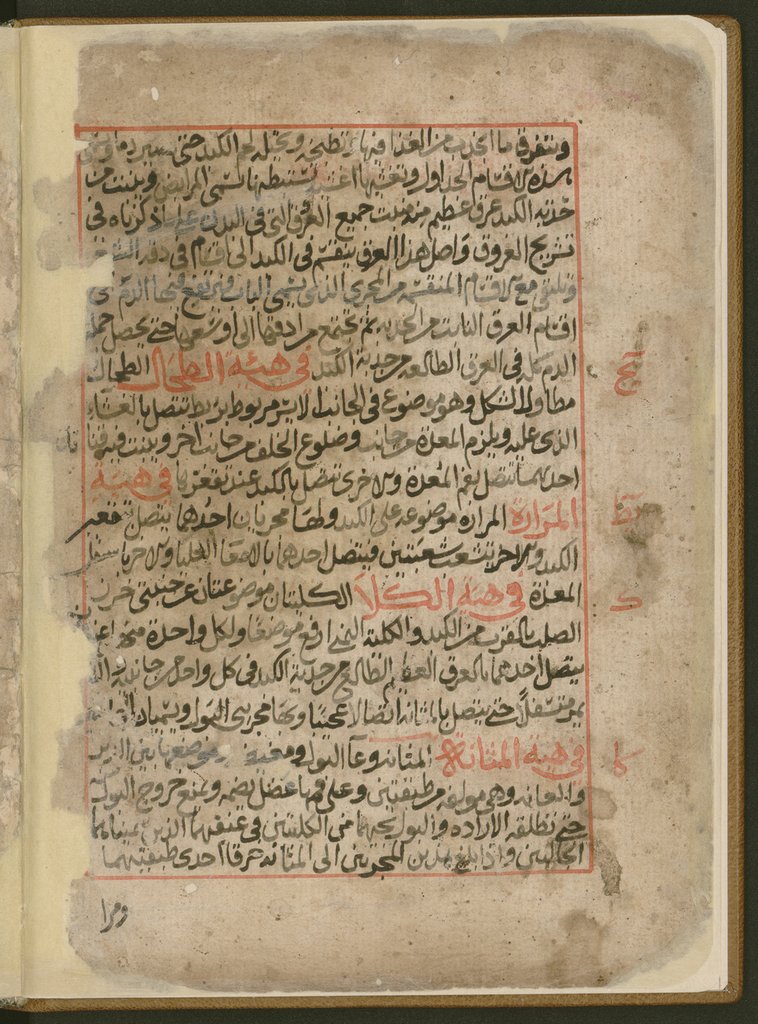This manuscript preserves the medical text of the Persian physician Razi, who worked at a hospital in Baghdad. The text deals with diet, hygiene, anatomy, physiology, general pathology, surgery, diagnosis, therapy, special pathology, and practical surgery.