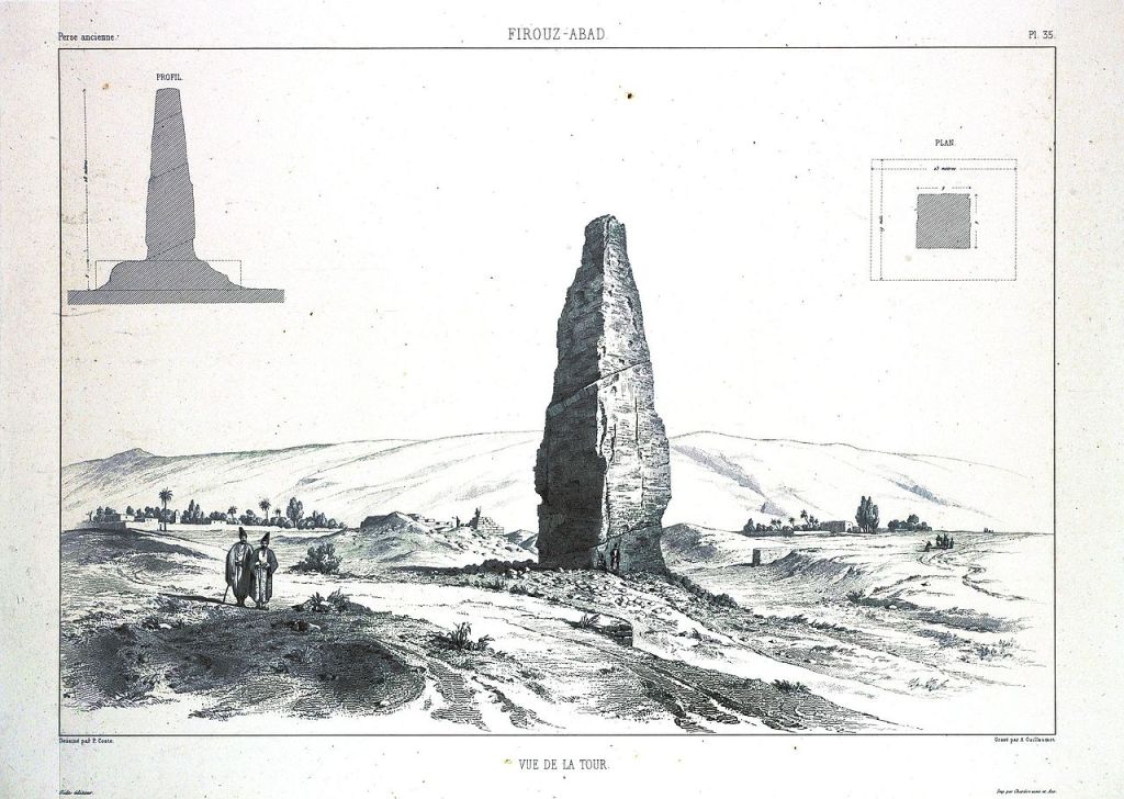 The Minar of Gor. The first two images shows how people in the 19th century imagined the minar, while the second shows what actually remains today.
