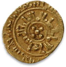 Right: Center: five pellets forming a Greek cross; Inner Margin: The King William the Second, desiring to be mighty in God; Outer Circle: “in the (name of God struck in Masina) year two and seventy and five hundred.