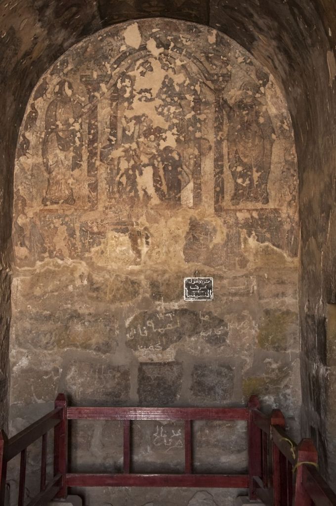 One of the more famous murals of Qusayr Amra shows the “six kings.” Four are labeled in both Greek and Arabic: the Byzantine emperor, the King of Spain, the Sasanian emperor, and the king of Axum. The other two are too damaged to identify, but historians have suggested the kings of China or India.