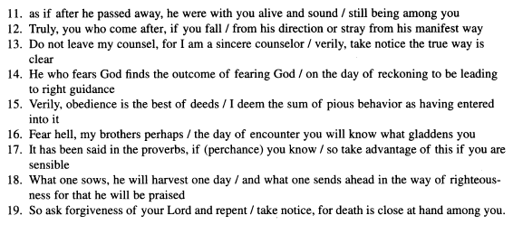 This poem was recorded in the Book of Songs by Isfahani, a 10th-century Arab author who collected poetry in Arabic. He explains that this poem was a khutba (sermon) of the Umayyad caliph Walid b. Yazid.